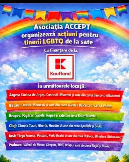 În perioada 20 – 22 februarie, Fundația Accept, cu finanțare de la lanțul de magazine Kaufland, organizează o Tabără de Activism LGBT, unde sunt chemați să participe adolescenți între 16 și 19 ani.