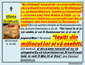 ”Cine nu este cu Mine este împotriva Mea şi cine nu adună cu Mine risipeşte. De aceea vă zic: Orice păcat şi orice hulă se va ierta oamenilor, dar hula împotriva Duhului nu se va ierta. Celui care va zice cuvânt împotriva Fiului Omului, se va ierta lui; dar celui care va zice împotriva Duhului Sfânt, nu i se va ierta lui, nici în veacul acesta, nici în cel ce va să fie.” (Matei 12, 30-32)