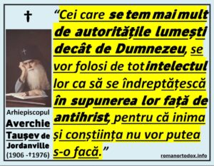 Din PĂCATE, IMENSA MAJORITATE a celor care se consideră ortodocși, obișnuiți cu ascultarea ORBEASCĂ de clerul căzut în erezia ecumenistă, fiind gata spălată pe creier, anesteziată la conștiință (realitate deja dovedită și răsdovedită DIN PLIN în timpul pLanDEMONiei – vezi vaxxinarea, purtarea măștii, acceptarea Sfintei Împărtășanii din linguriță de unică folosință, etc, etc), are toate șansele să se supună tot ORBEȘTE, sistemului antihristic în tot ceea ce acesta implementează forțat (hrană sintetică ori din insecte, acte biometrice, portofelul electronic, sistemul creditului social deja testat cu deosebit succes în China, etc, etc), lepădați fiind astfel de Hristos, de Biserica cea ”Una, Sfântă, Sobornicească și Apostolească”, de Ortodoxie, deci implicit (conform Sfintelor Canoane veșnic valabile, clare, categorice și obligatorii pentru TOȚI credincioșii), de orice nădejde la mântuire…