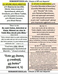 mutându-se în mod diabolic accentul ESENȚIAL de la ORTODOXIA CARE NICIO SECUNDĂ NU ȘI-A PIERDUT UNITATEA – PRECUM CĂMAȘA LUI HRISTOS – la creștinism (prin care se înțelege totalitatea celor care cred în Hristos, INCLUSIV a celor care au denaturat / modificat / schimbat / pervertit învățătura ortodoxă – adică toate SECTELE acum RE-denumite conform politicii-corecte ca ”denominațiuni”, ”confesiuni” și mai nou, odată cu semnarea oficială a documentelor adoptate la pseudo-sinodul din Creta din data de 26.06.2016: ”Biserici surori” (!!!),