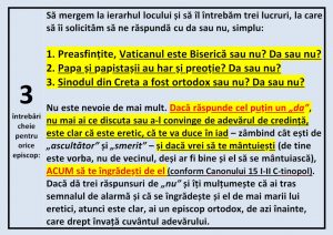 Dacă dă trei răspunsuri de „nu” și îți mulțumește că ai tras semnalul de alarmă și că se îngrădește și el de mai marii lui eretici, atunci este clar, ai un episcop ortodox, de azi înainte, care drept învață cuvântul adevărului.
