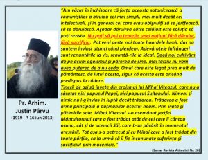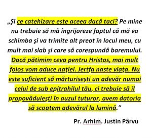 „Pentru noi, creștinii, este o binefacere această sărăcie, pentru că ne învață să fim mai cu stăpânire de sine, mai grijulii și mai cu frică de Dumnezeu. Nu vedeți că popoarele mai emancipate, care au toate la îndemână, nu mai cred în Dumnezeu? Primul act pe care îl fac, atunci când se simt în bunăstare, este să uite de Dumnezeu. Unde este o Franță, unde este o Spanie, o Italie de altădată? Dar să crezi că un sistem politic sau economic te mai poate izbăvi, este o mare înșelare, pentru că societatea este alterată ca și conducătorii lumii până în adâncurile ființei lor. E o mare pierdere de timp. Nu mai avem altă soluție decât rugăciunea.