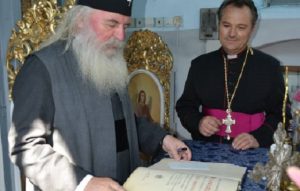 – episcop ortodox și preot greco-papistas ținându-se de braț