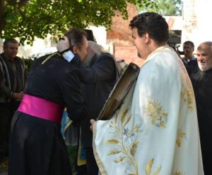 Da, se întâmplă în România. Normalitatea este frumoasă! Din păcate sunt destul de rare astfel de ocazii. Nu ne propunem să comentăm de ce și care sunt practicile zonei în care noi trăim că ar fi de prisos. În Banat lucrurile stau însă altfel și asta ne bucură. Înalt Preasfinția Sa Ioan Sălăjan calcă pe urmele predecesorului său Nicolae Corneanu și azi, 23 septembrie, după ce a vizitat biserica ortodoxă din Comlos, a vizitat și biserica greco-papistasa, la invitația preotului paroh. Imaginile sunt sugestive:
