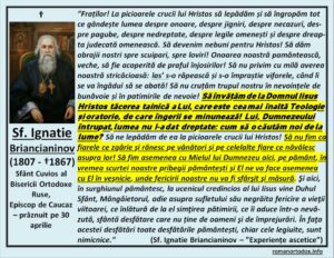,,Fraților! La picioarele crucii lui Hristos să lepădăm și să îngropăm tot ce gândește lumea despre onoare, despre jigniri, despre necazuri, despre pagube, despre nedreptate, despre legile omenești și despre dreapta judecată omenească. Să devenim nebuni pentru Hristos! Să dăm obrajii nostri spre scuipari, spre loviri! Onoarea noastră pamântească, veche, să fie acoperită de praful înjosirilor! Să nu privim cu milă averea no…astră stricacioasă: las’ s-o răpească și s-o împraștie viforele, când li se va îngădui să se abată! Să nu cruțăm trupul nostru în nevoințele de bunăvoie și în patimirile de nevoie! Să învățăm de la Domnul Iisus Hristos tăcerea tainică a Lui, care este cea mai înaltă Teologie și oratorie, de care îngerii se minunează! Lui, Dumnezeului întrupat, lumea nu I-a dat dreptate: cum să o căutăm noi de la lume? Să ne lepădăm de ea la picioarele crucii lui Hristos! Să nu fim ca fiarele ce zgârie şi rănesc pe vânători şi pe celelalte fiare ce năvălesc asupra lor! Să fim asemenea cu Mielul lui Dumnezeu aici, pe pământ, în vremea scurtei noastre pribegii pământeşti şi El ne va face asemenea cu El în veşnicie, unde fericirii noastre nu va fi sfârşit şi măsură. Şi aici, în surghiunul pământesc, la ucenicul credincios al lui Iisus vine Duhul Sfânt, Mângâietorul, adie asupra sufletului său negrăita fericire a vieţii viitoarei, ce înlătură de la el simţirea pătimirii, ce îi aduce într-o nevăzută, sfântă desfătare care nu ține de oameni şi de împrejurări. În faţa acestei desfătări toate desfătările pământești, chiar cele legiuite, sunt nimicnice.”